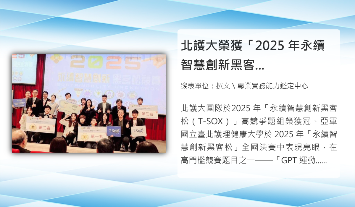 北護大榮獲「2025 年永續智慧創新黑客松」高競爭題組冠、亞軍