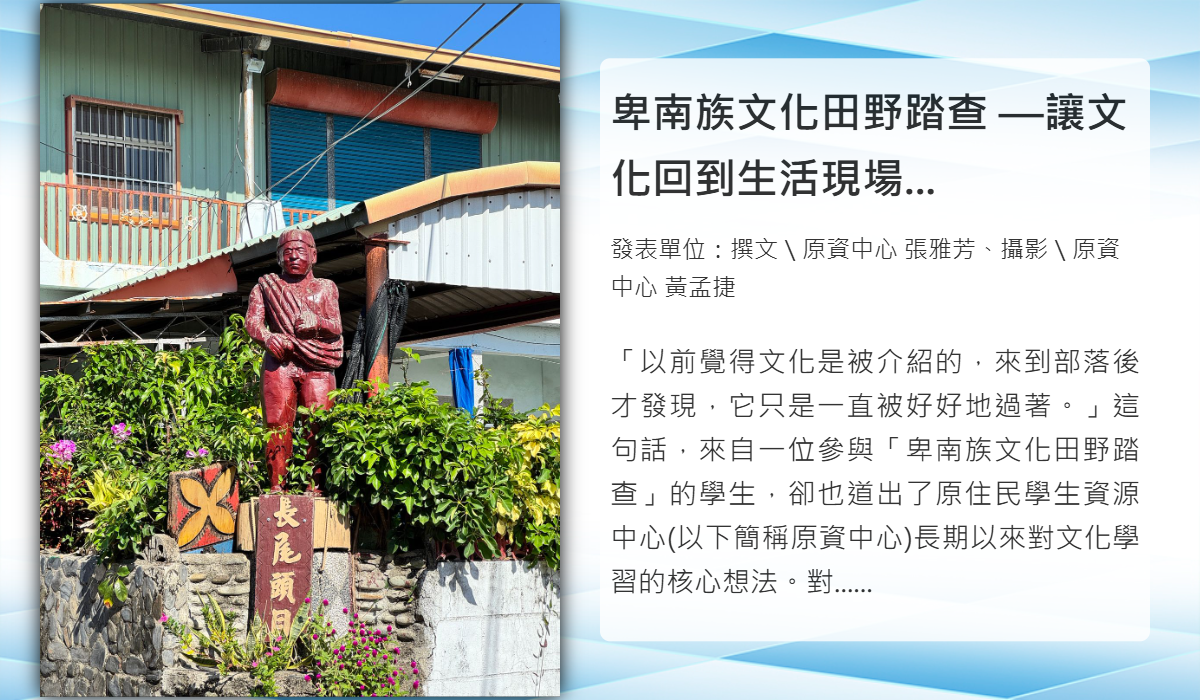 卑南族文化田野踏查 —讓文化回到生活現場的學習實踐