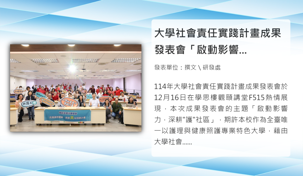 大學社會責任實踐計畫成果發表會「啟動影響力,深耕"護"社區」