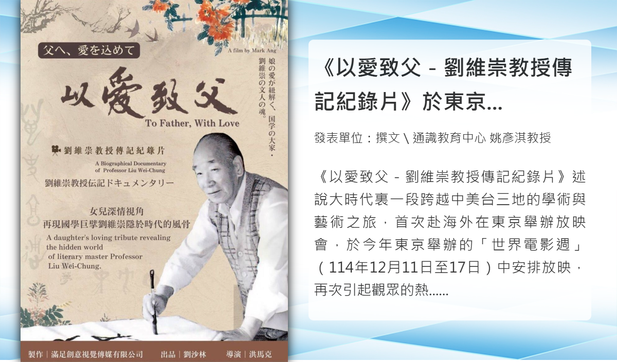 《以愛致父-劉維崇教授傳記紀錄片》於東京放映會榮獲影展獎項