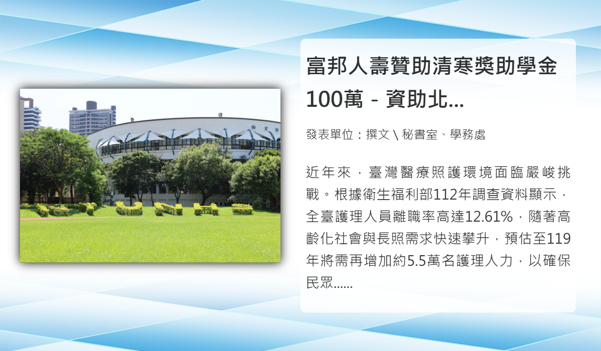 富邦人壽贊助清寒獎助學金100萬-資助北護大培育健康照護人才